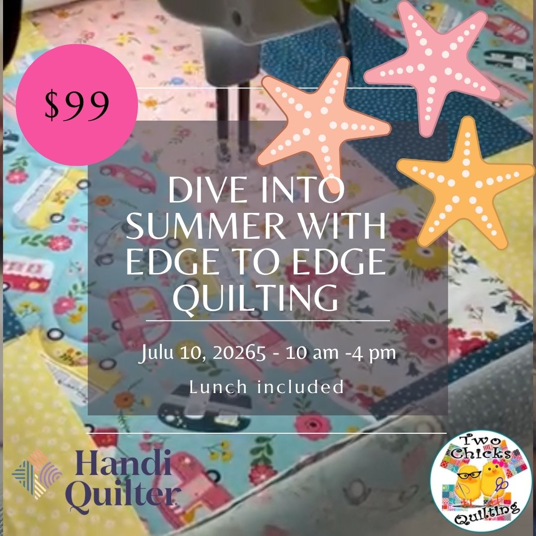 Two Chicks Quilting is your one-stop quilt shop in South Texas. We are known for our huge selection of fabrics and notions, 108” fabric, longarm quilting services, and the best in the area for machine sales and education! This is where you will find Friends, Fabric, and FUN! Visit us in person, shop online, or even join us for fun live virtual shopping opportunities on our Facebook Page!