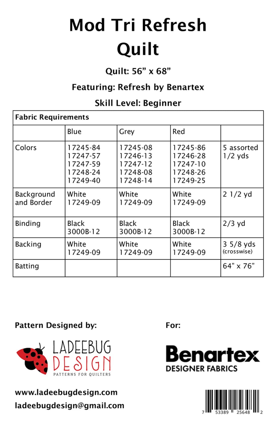 Finished size: 56" x 68".