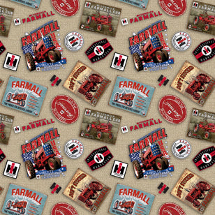 The Farmall Patriotic collection celebrates the American Farm-life. Rich with rustic charm, these prints combine beloved rural motifs — tractors, barns, and logos — with patriotic symbols like American flags and stars in a bold red, white, and blue palette.