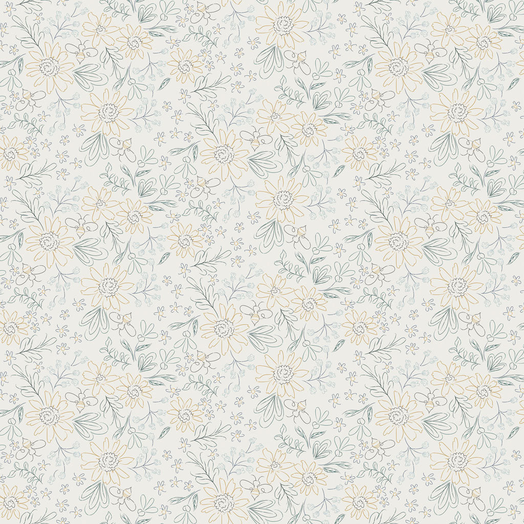 This charming fabric collection designed by Meags and Me features delightful honeybee-themed designs. The patterns range from large, vibrant sunflowers and buzzing bees to intricate floral motifs and geometric prints, all set against a soothing palette of blues, greens, yellows, and whites. Perfect for quilting, crafting, or any sewing project, this collection brings a touch of nature's sweetness into your creations, offering a harmonious blend of traditional and modern aesthetics.