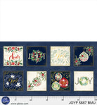 This Joyful Christmas fabric features a festive design in a rich color palette of navy, red, and cream. The fabric is adorned with traditional holiday motifs, including detailed ornaments, sprigs of holly, and pinecones, creating a cheerful and classic holiday feel. The combination of deep navy and bright red brings a vibrant contrast, along with the soft cream provides a warm, neutral color to blend perfectly.