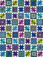 Mexican Tiles by Karen Montgomery: Made from the Counter Point 2 Collection using the White & Teal Background Fabric. Kit comes with all the fabric needed to make the quilt top including the binding. Quilt finishes out to be 56"x72". Pattern is NOT INCLUDED.