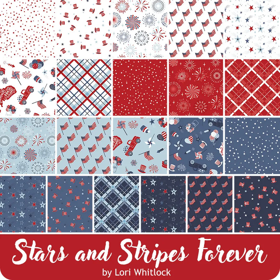 Stars and Stripes Forever is a fabric line designed by Lori Whitlock for Riley Blake Designs. With a traditional color palette of white, red and blue, your projects will glow like a firework. From quilts to home decor projects and everything in-between, your home will shine like the grand ‘ole flag.