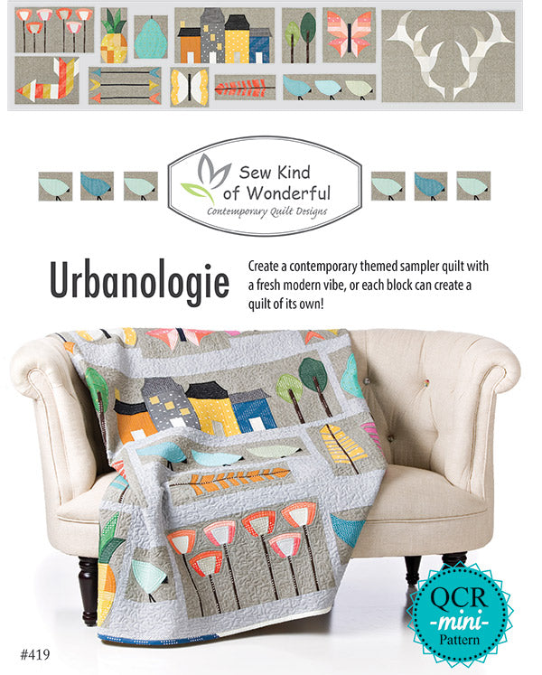 A contemporary themed sampler quilt with a fresh modern vibe, or each block can create a fantastic quilt of its own! Organized as 12 blocks/months with overall quilt materials and each block has a materials list also. It has three different layouts to appeal to a variety of styles. Blocks include: birds, trees, skinny arrows, big arrows, pears, flutterby, houses, feathers, butterfly, pineapples, poppies and antlers.